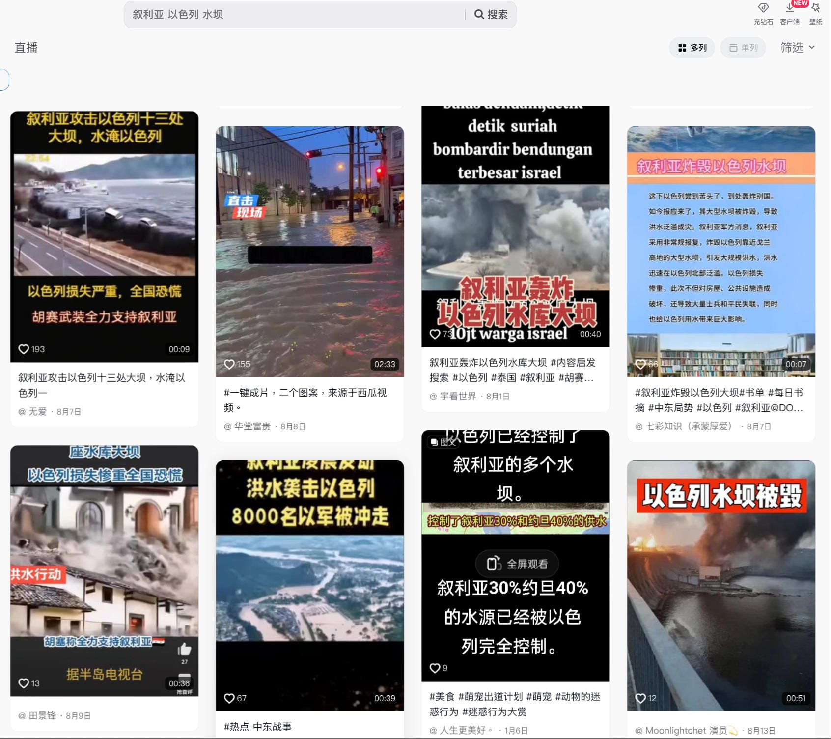 - 抖音搜尋「叙利亚 以色列 水坝」結果