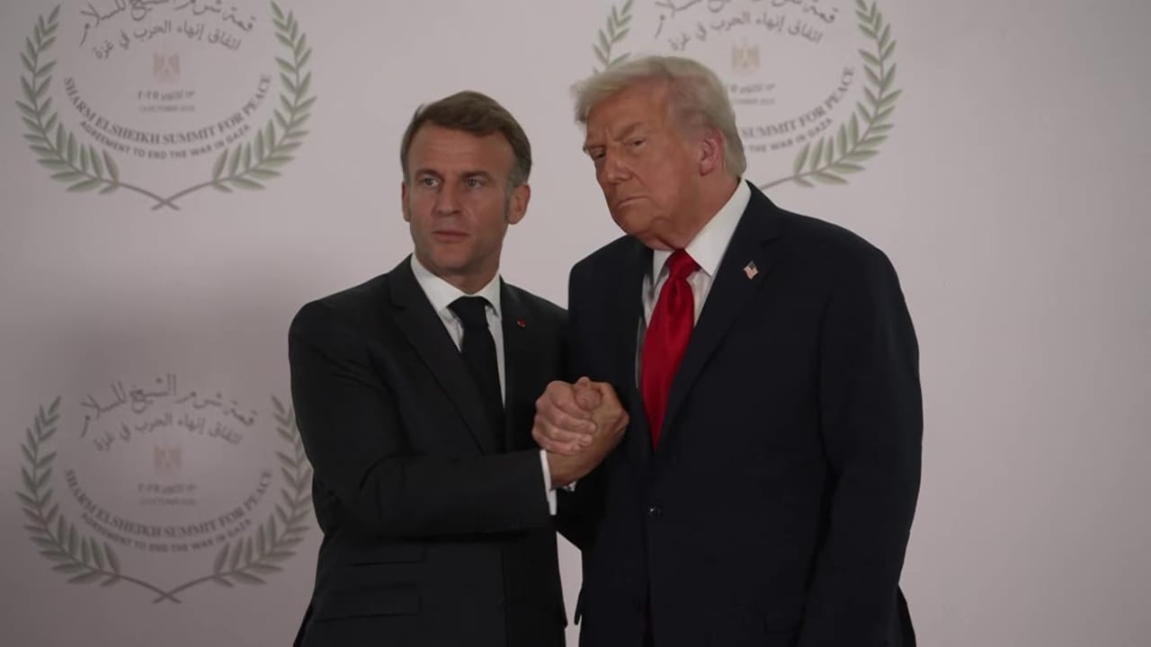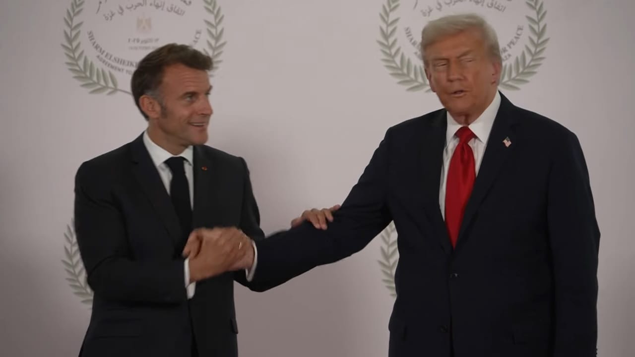 - Macron and Trump shake hands on sidelines of Egypt summit on Gaza | AFP (YouTube/AFP News Agency),Wayback Machine備份網頁。原文為“US President Donald Trump and his French counterpart Emmanuel Macron shake hands on the sidelines of a summit on Gaza being hosted in Sharm el-Sheikh, Egypt.”