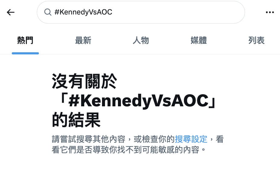 - 在X搜尋「#KennedyVsAOC」結果