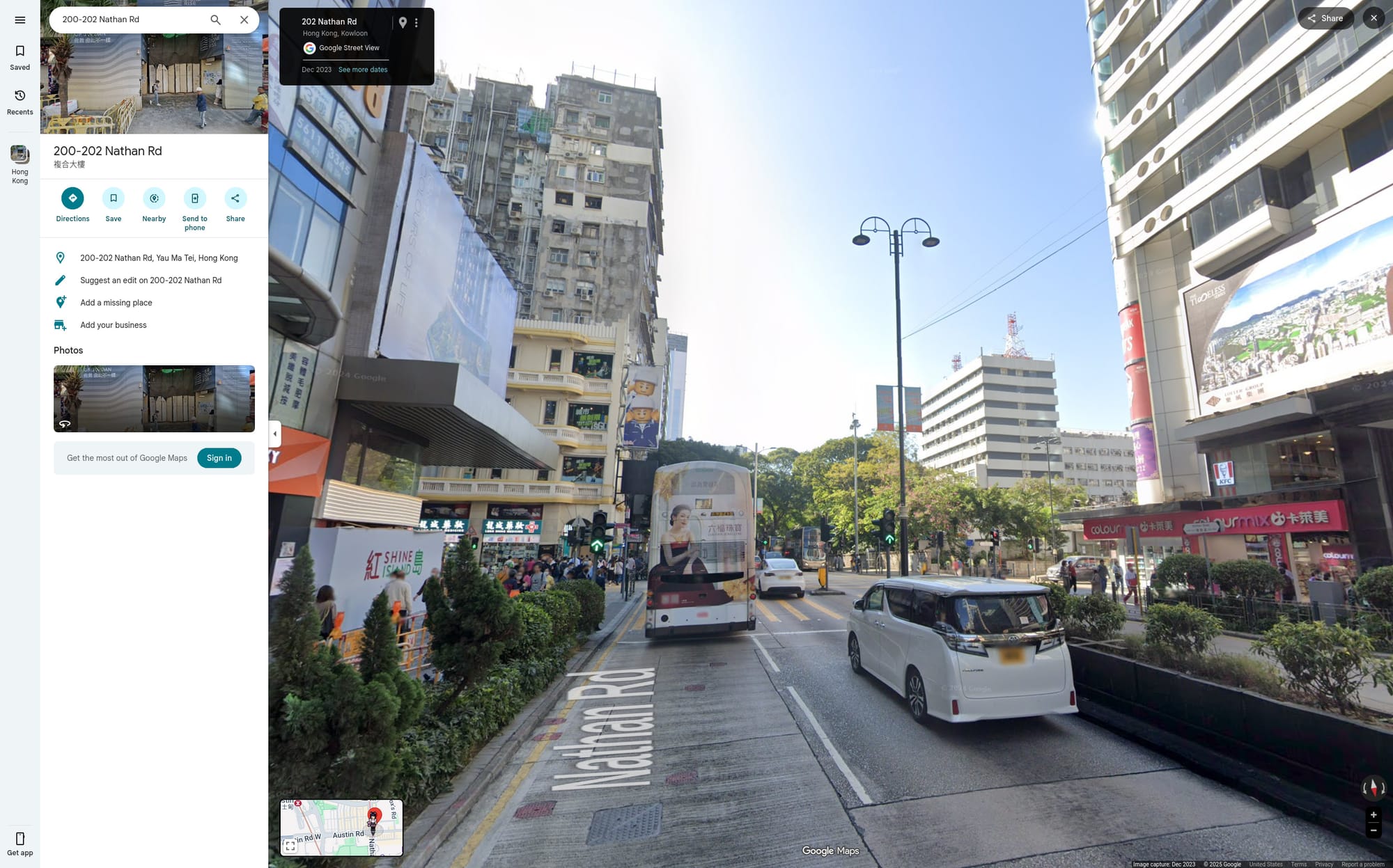 在Google地圖使用街景服務檢視於彌敦道200至202號位置、如網傳圖片般背對212號方向可見,前方右邊為尖沙咀分區警署,周圍的建築物與網傳圖片有顯著分別。[9]