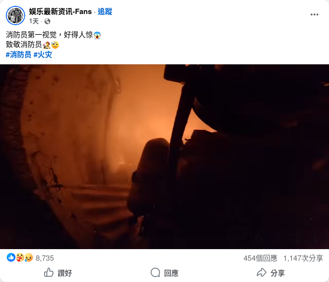香港大埔宏福苑火災發生後,社交媒體流傳宣稱為「消防員第一視角」的影片。