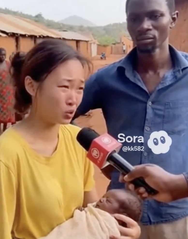 Facebook流傳多段一名女子抱著嬰兒受訪,以普通話哭訴非洲生活艱難的影片。
