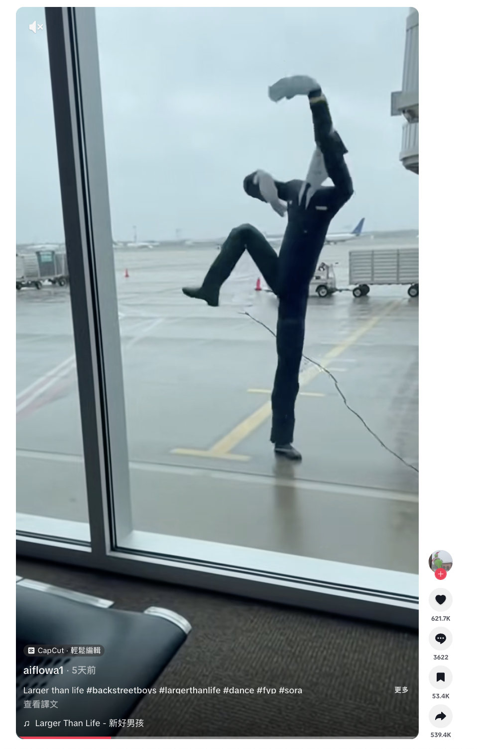 經搜尋,該影片由自稱「AI視覺特效藝術家」的用戶「aiflowa1」發佈,原始片段附上AI影片生成模型「Sora」的標籤。