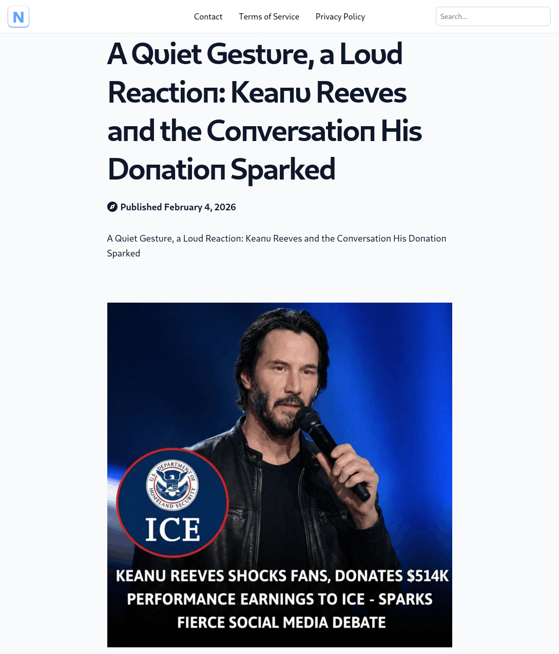 2026年2月6日,Facebook用戶「Patrick Yeh」發佈圖片,顯示演員奇洛李維斯(Keanu Reeves)及美國移民和海關執法局(U.S. Immigration and Customs Enforcement, ICE)的標誌。圖中英語宣稱奇洛李維斯捐出逾51萬美元的表演收入給ICE,令支持者驚訝及引起社交媒體上的熱烈討論。[1]