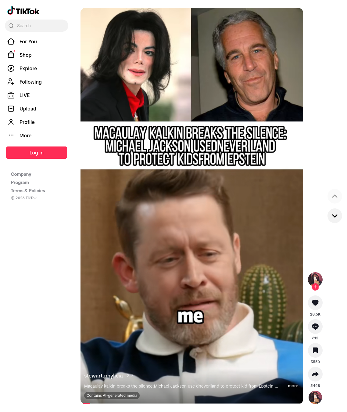 - AI conspiracy video using Macaulay Culkin to claim Michael "protected" him from Epstein. : r/LeavingNeverlandHBO (Reddit / MasterpieceTimely144),Wayback Machine備份網頁