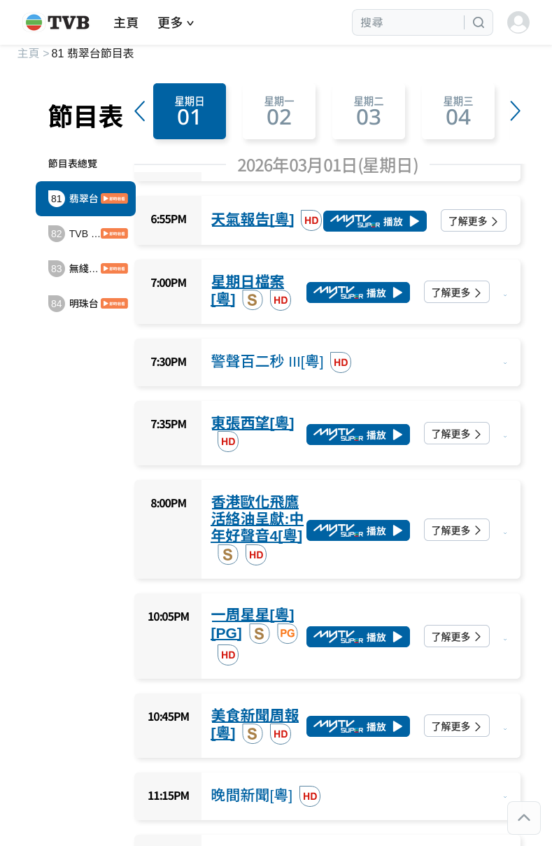 - 翡翠台 - 節目表、LIVE直播(TVB 無綫電視)
