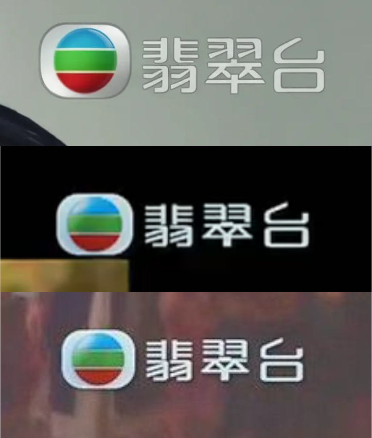 - 對比翡翠台影片截圖的台徽,可見與網傳圖片的台徽有別。
