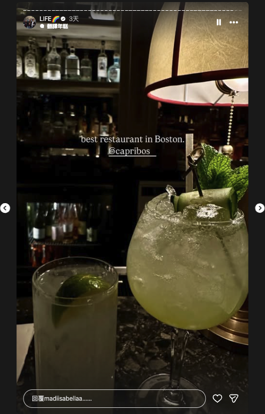 翻查馬殊帳戶的動態精選合集「LIFE🌈」,3月1日發佈的限時動態顯示她當日身處波士頓。[13]