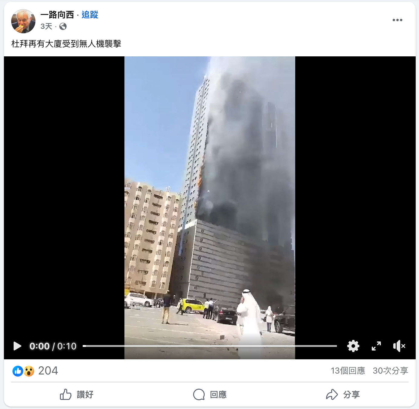 2026年3月1日,Facebook專頁「一路向西」發佈一段建築物冒出濃煙的影片,聲稱阿聯酋城市杜拜(Dubai)有大廈受到無人機襲擊。有用戶留言宣稱「那是CIA在杜拜的總部」及「美國CIA人員的住所」。[3]