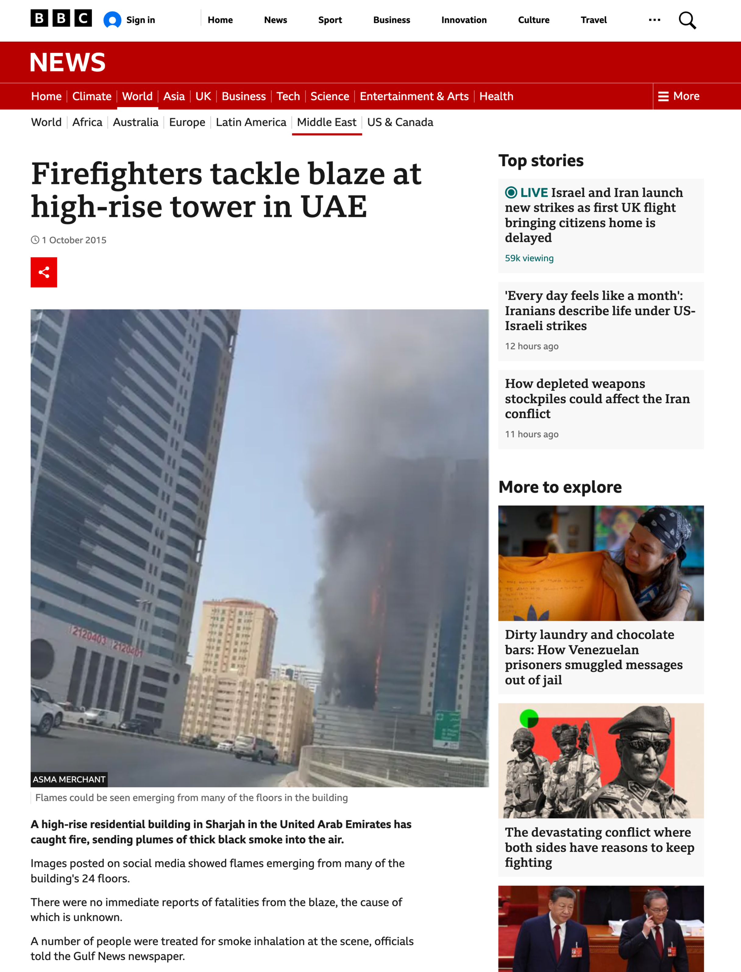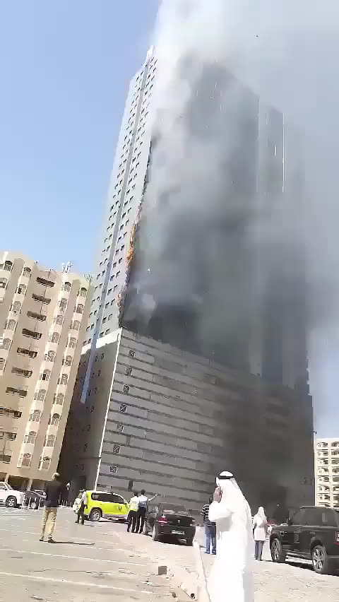 - Firefighters tackle blaze at high-rise tower in UAE(BBC News),Wayback Machine備份網頁。原文為“A high-rise residential building in Sharjah in the United Arab Emirates has caught fire, sending plumes of thick black smoke into the air.”